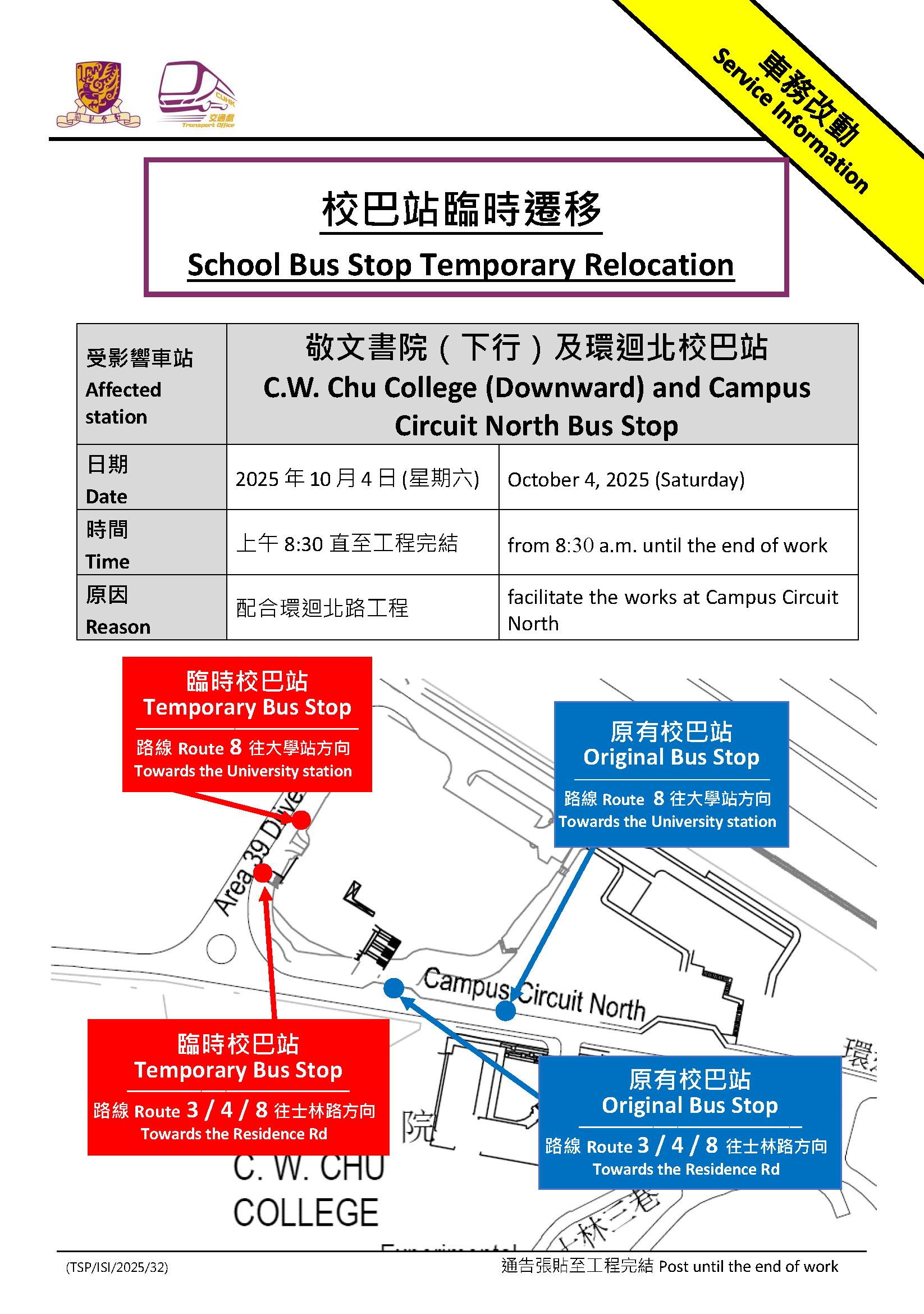 校巴站臨時遷移 – 敬文書院(下行)及環迴北站